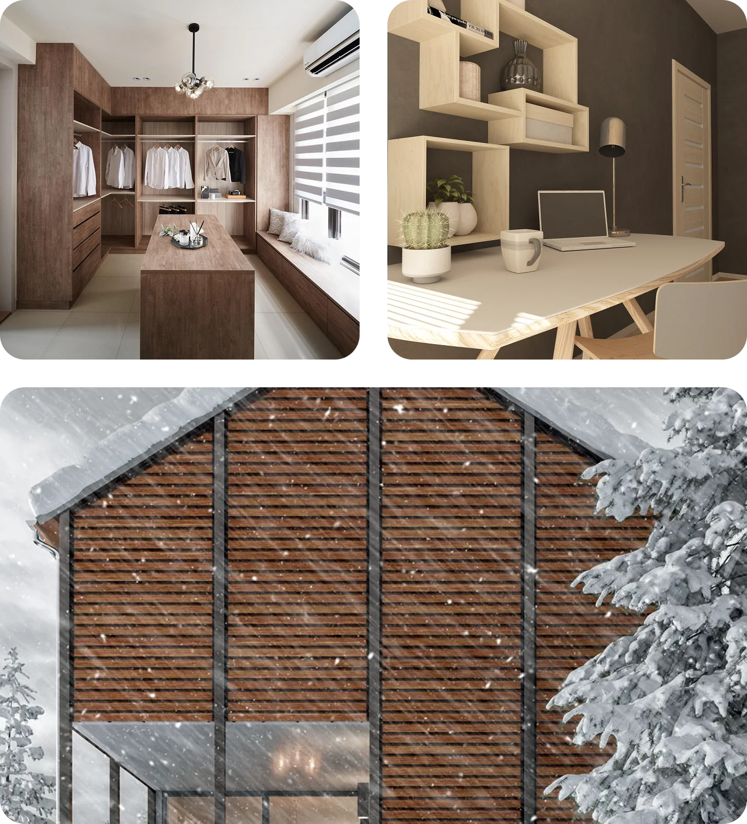 Finitions bois, pierre, béton, métal. Idéal pour les murs d’hôtels, restaurants, bureaux et espaces résidentiels.