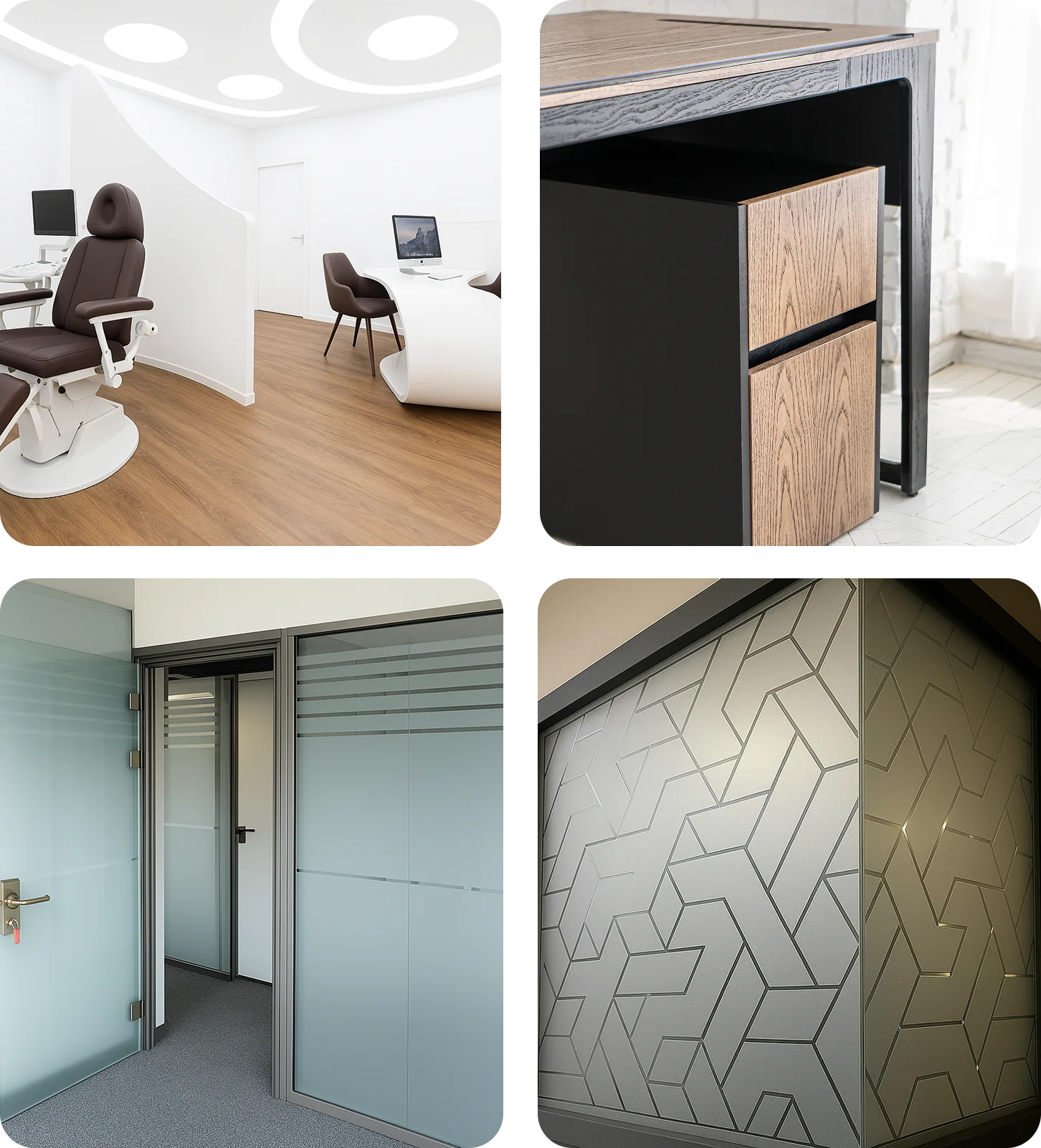 Parfaits pour les espaces professionnels où contrôle de la visibilité et élégance sont primordiaux.